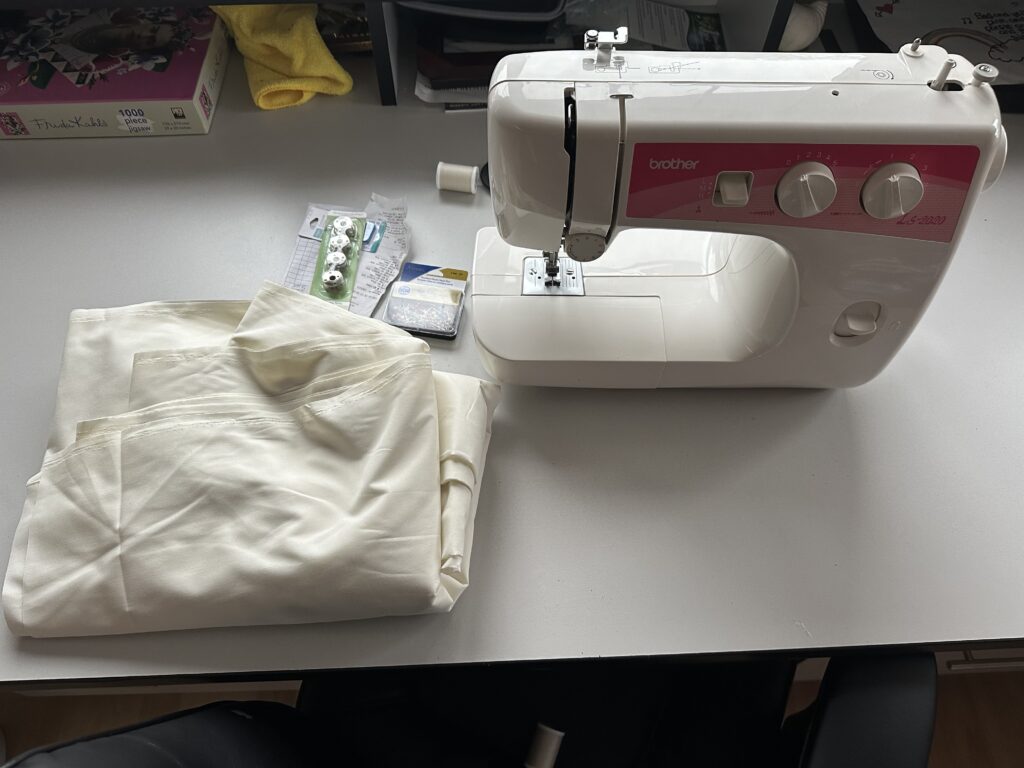 Now that I’ve got my fabric ironed and cut, it’s time to practice sewing with my machine on the remainder of the fabric before I attempt my curtains!